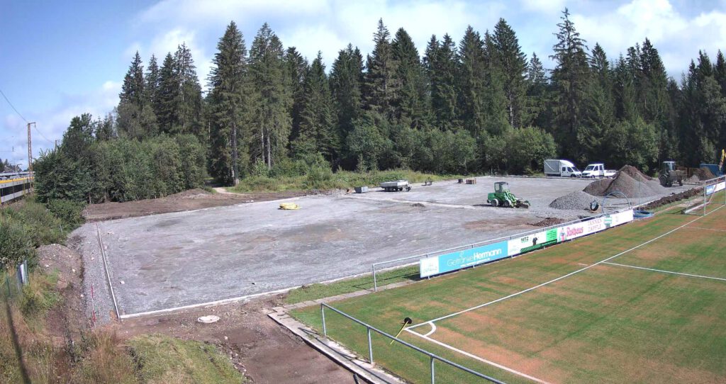 Auch das Bau des Kleinfelds kommt gut voran. Die Vorbereitungen des Untergrund sind erfolgt und es ist schon zu erahnen, wie das neue Spielfeld aussehen wird.